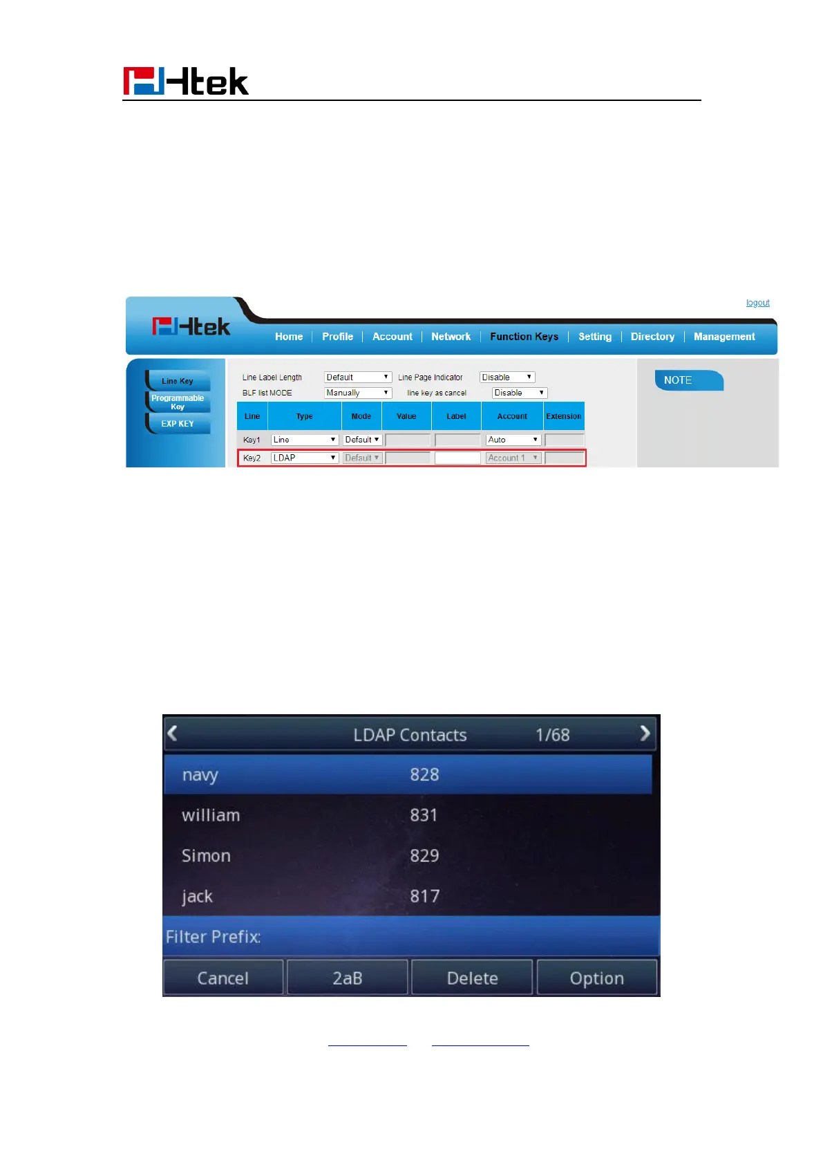 When press the LDAP Key the LCD will display as following: