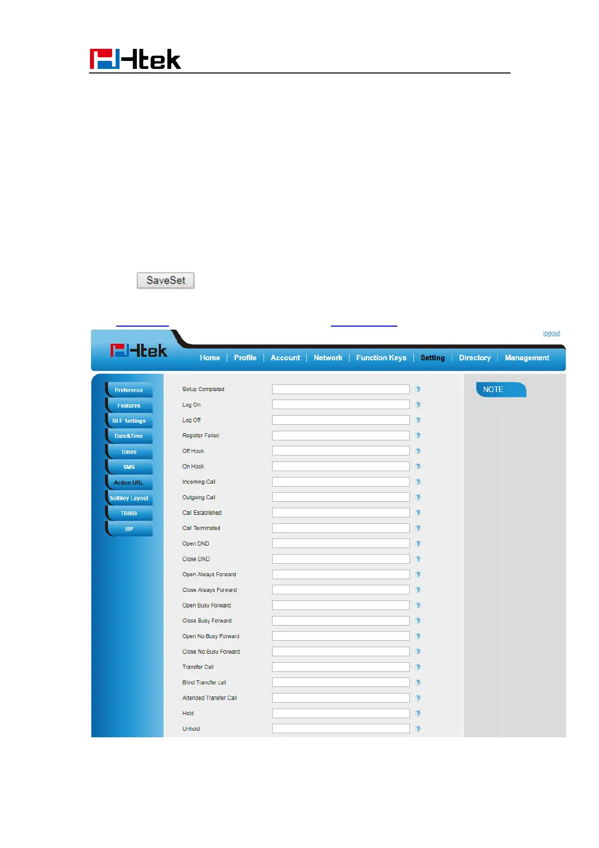 Htek UC926E - Other Features Settings; Action URL