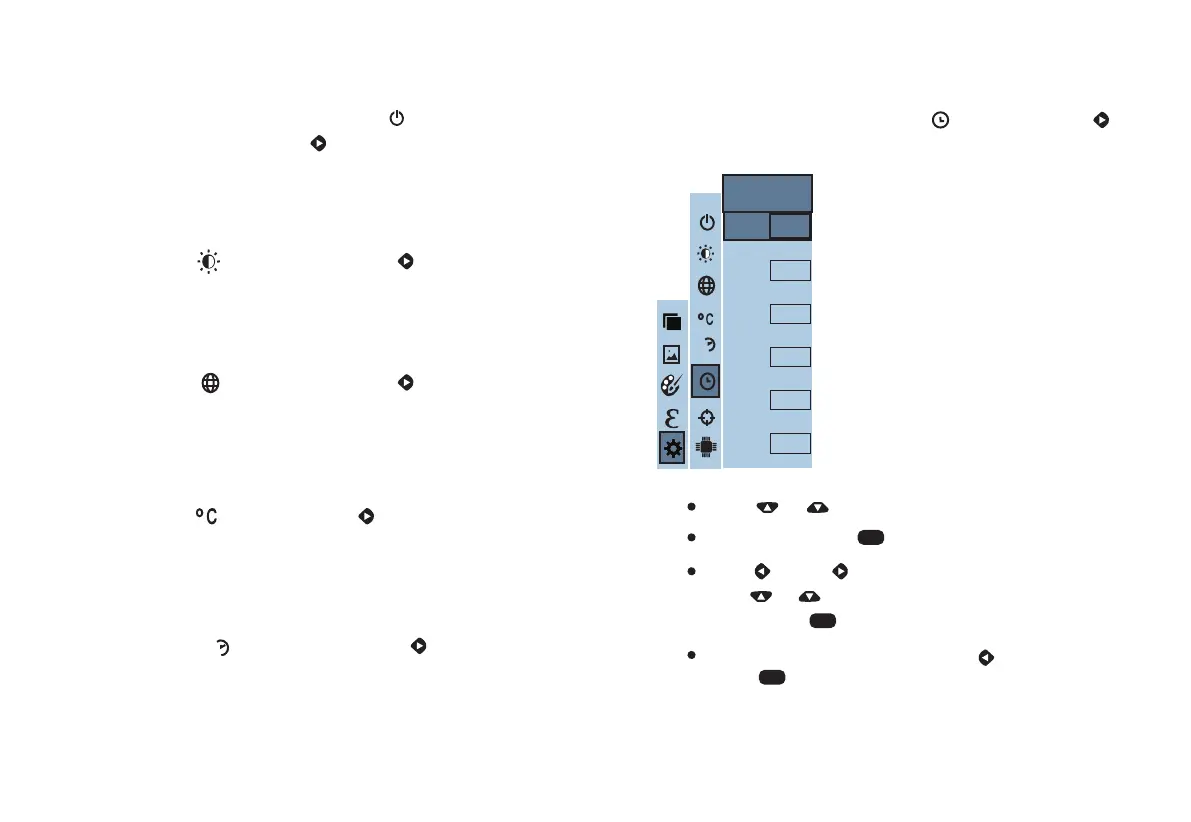 Press “ ”/“ ” to select year/month/day/hour/minute.