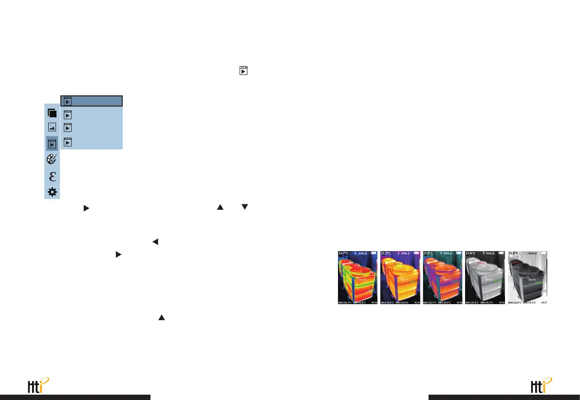 palette is divided into: rainbow, iron red, cool, white hot, black hot,