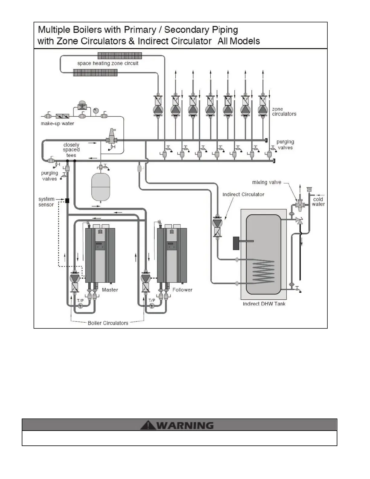 8. Piping shown is Primary/Secondary. System ow (secondary loop) must be greater than the boiler’s primary loop ow.