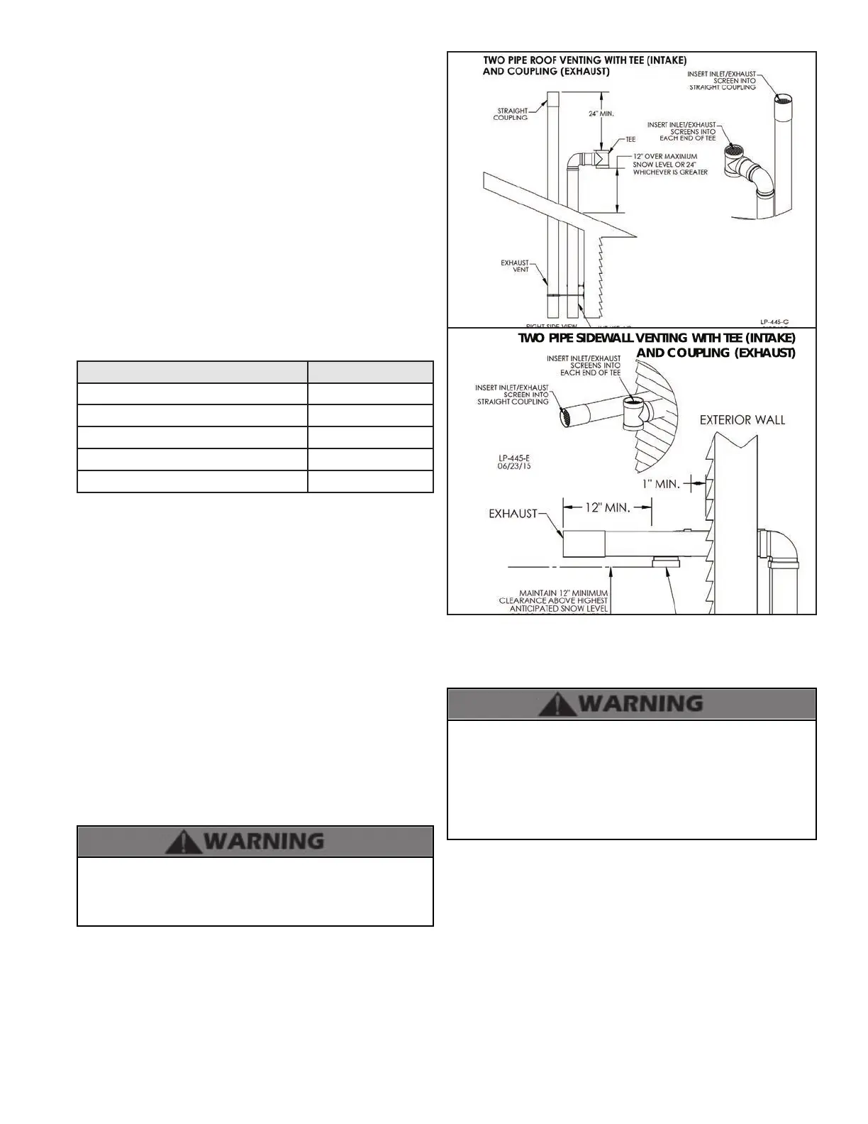 vent options detailed in this manual: 1. Side Wall Venting, 2.