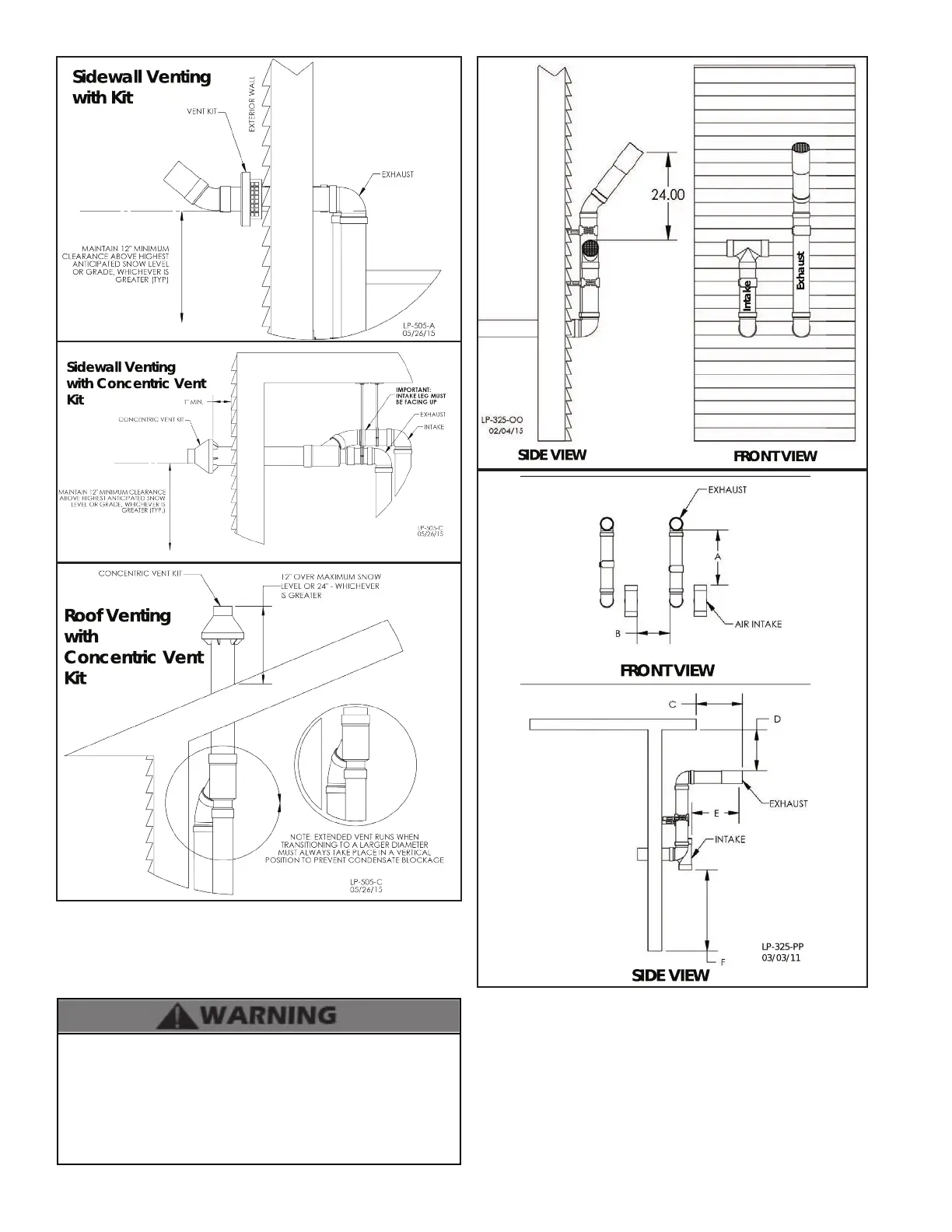 Figure 18 - Venting with Optional Kits (NOT INCLUDED WITH THE