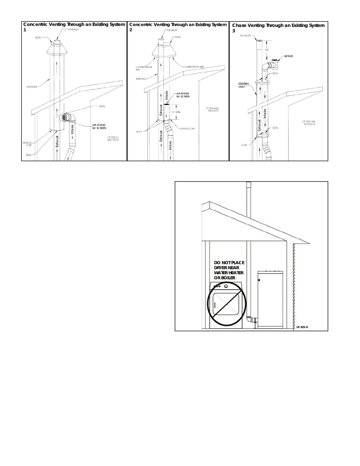 Figure 21 - 1, 2 - Concentric Venting Through an Existing System, 3, Chase Venting Through an Existing System