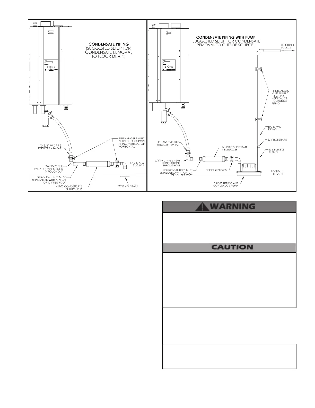 1. Condensate line must be pitched at least ¼” per foot to