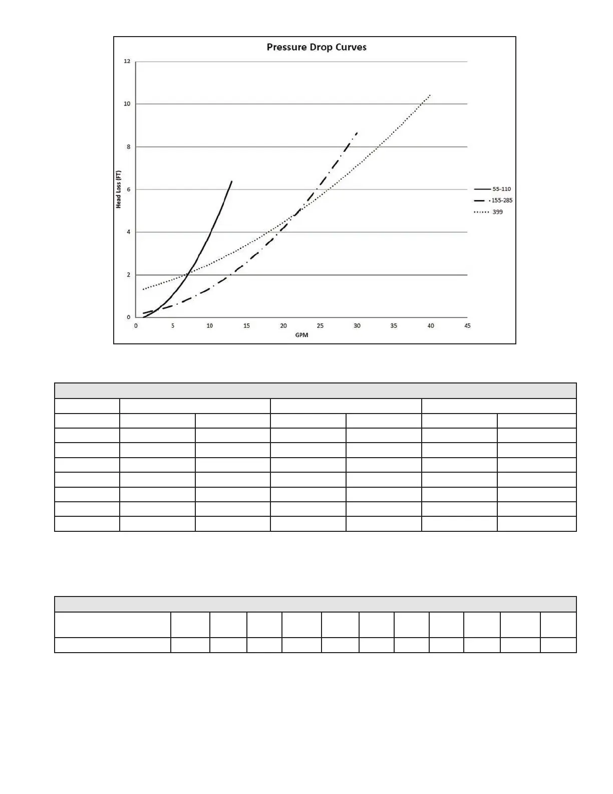 Model Friction Ft Flow Rate (GPM) Friction Ft Flow Rate (GPM) Friction Ft Flow Rate (GPM)