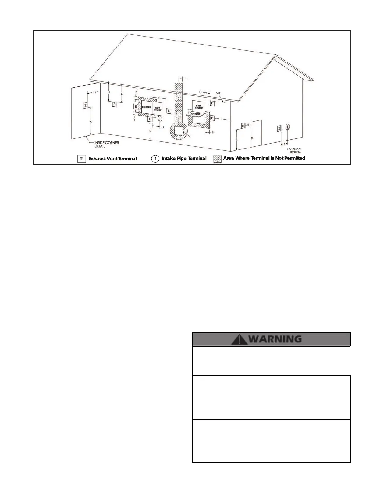 • DO NOT locate the exhaust vent or intake pipe terminals under