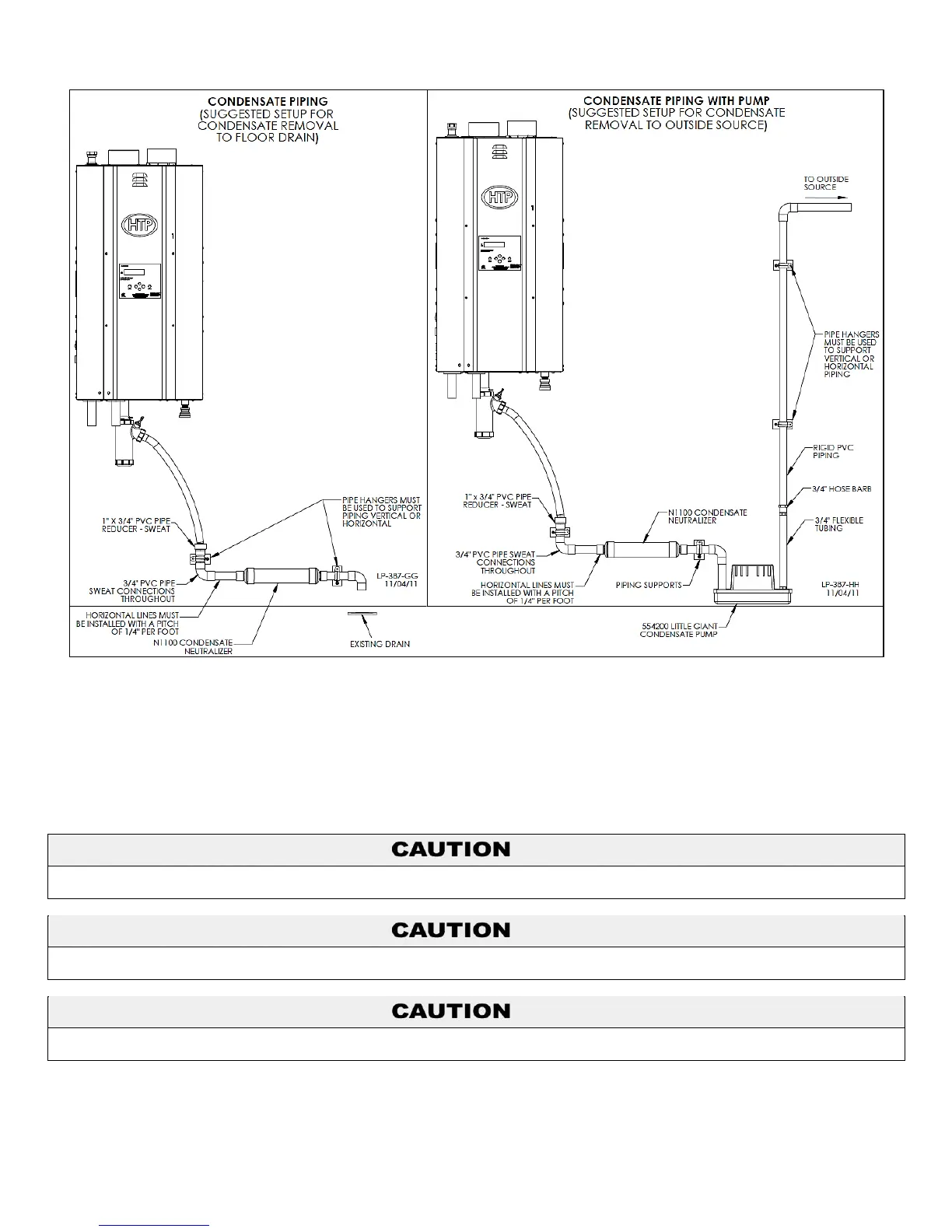 3. NEVER install condensate lines outside. It is very important that the condensate line is not exposed to freezing temperatures or any type of