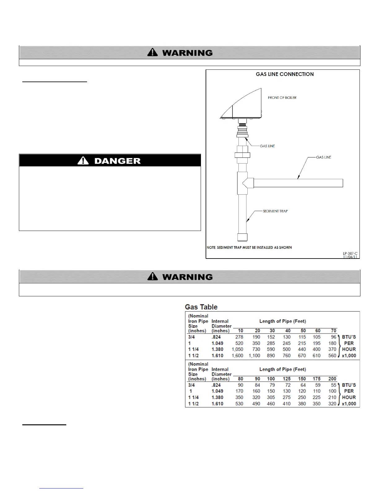 Table 15 – Gas Pipe Sizing / BTU’s per Hour