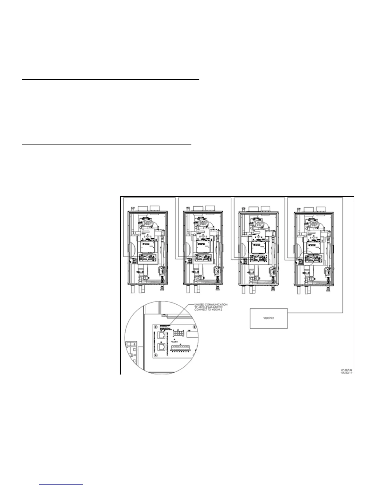 2. Use standard CAT3 or CAT5 computer network patch cables to connect the communication bus between each of the boilers. These