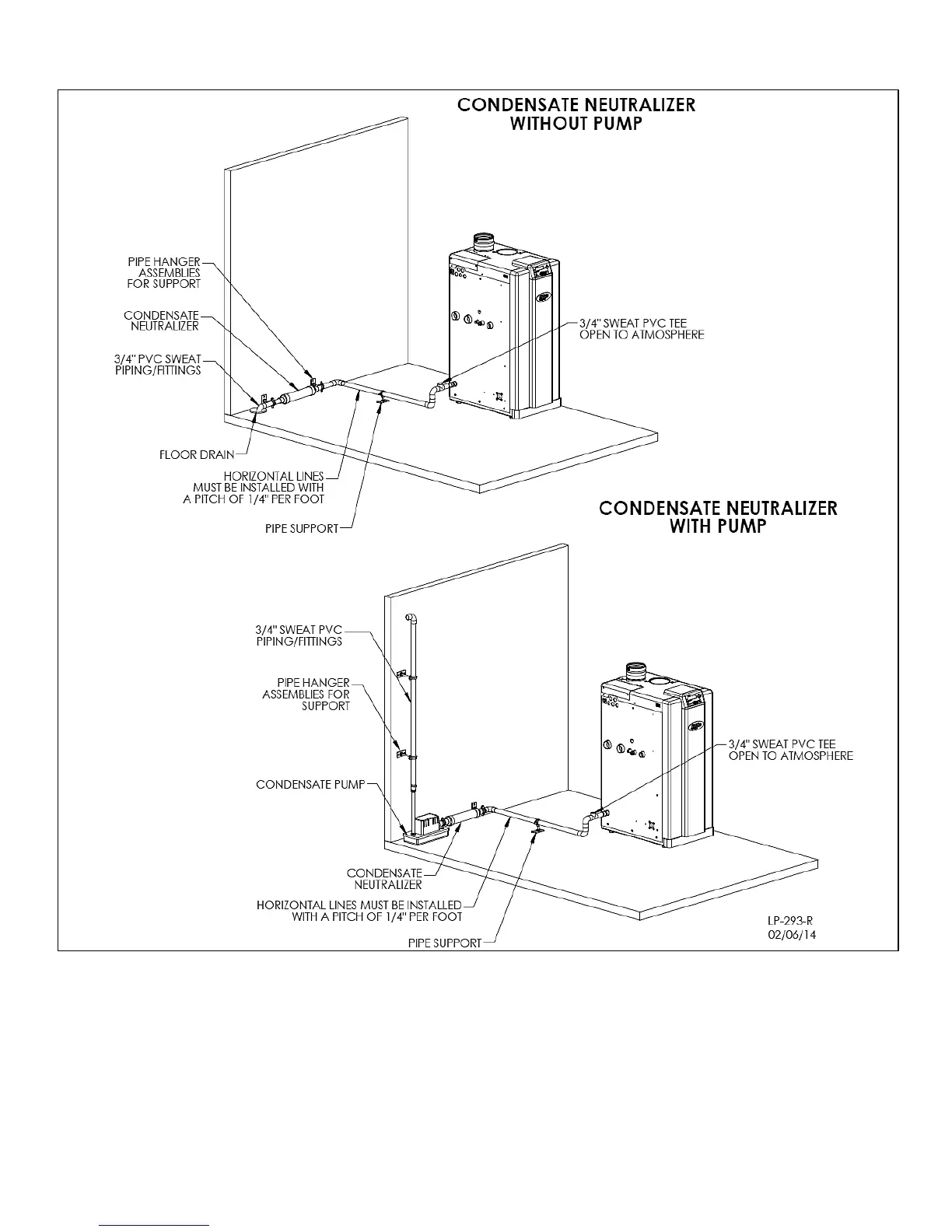 used, you must increase the condensate line to a minimum of 1” ID and place a tee in the line after the condensate neutralizer to properly