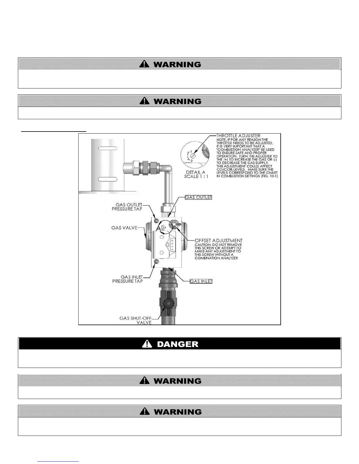 Adjustments to the throttle screw or offset may only be made by a qualified gas technician using a calibrated combustion analyzer