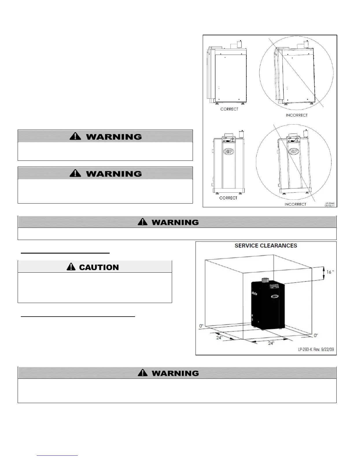 clearances are not provided, it may not be possible to service the boiler