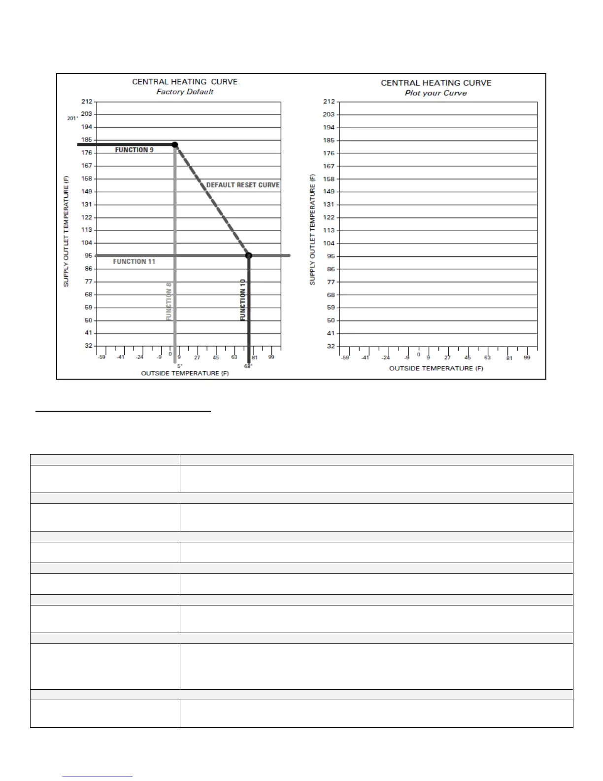 Table 21 – NOTE: It is important to note that the user can adjust the heat curve down by lowering the central heating temperature.