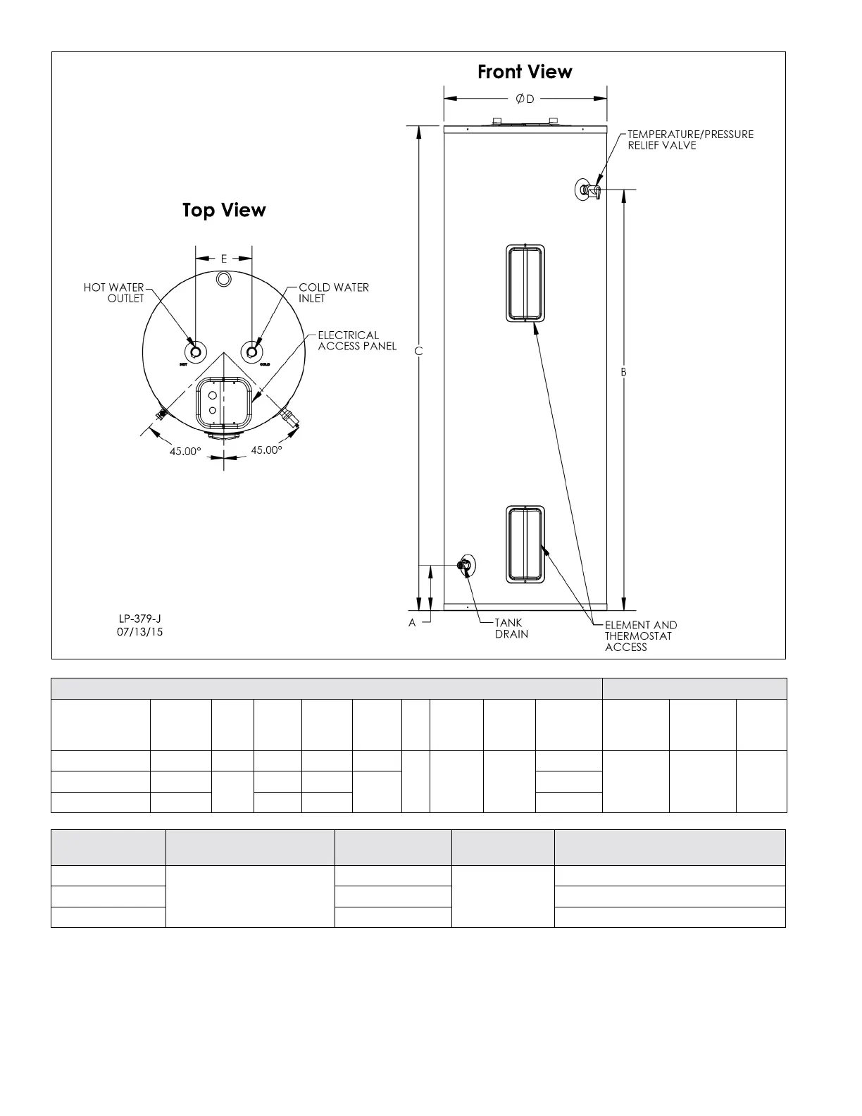 Table 3 - Electrical Specications Including Corresponding Wattages / Voltages / Amperages - *** Refers to Model Type and Gallon Size - See Table 2