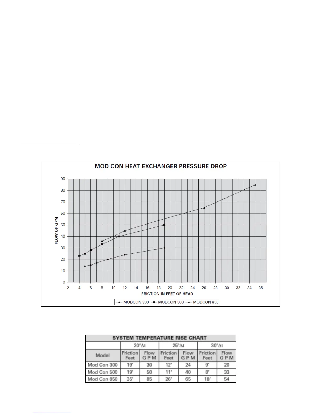 The chart below represents the various system design temperature rise through the boiler, along with respective flows and friction loss