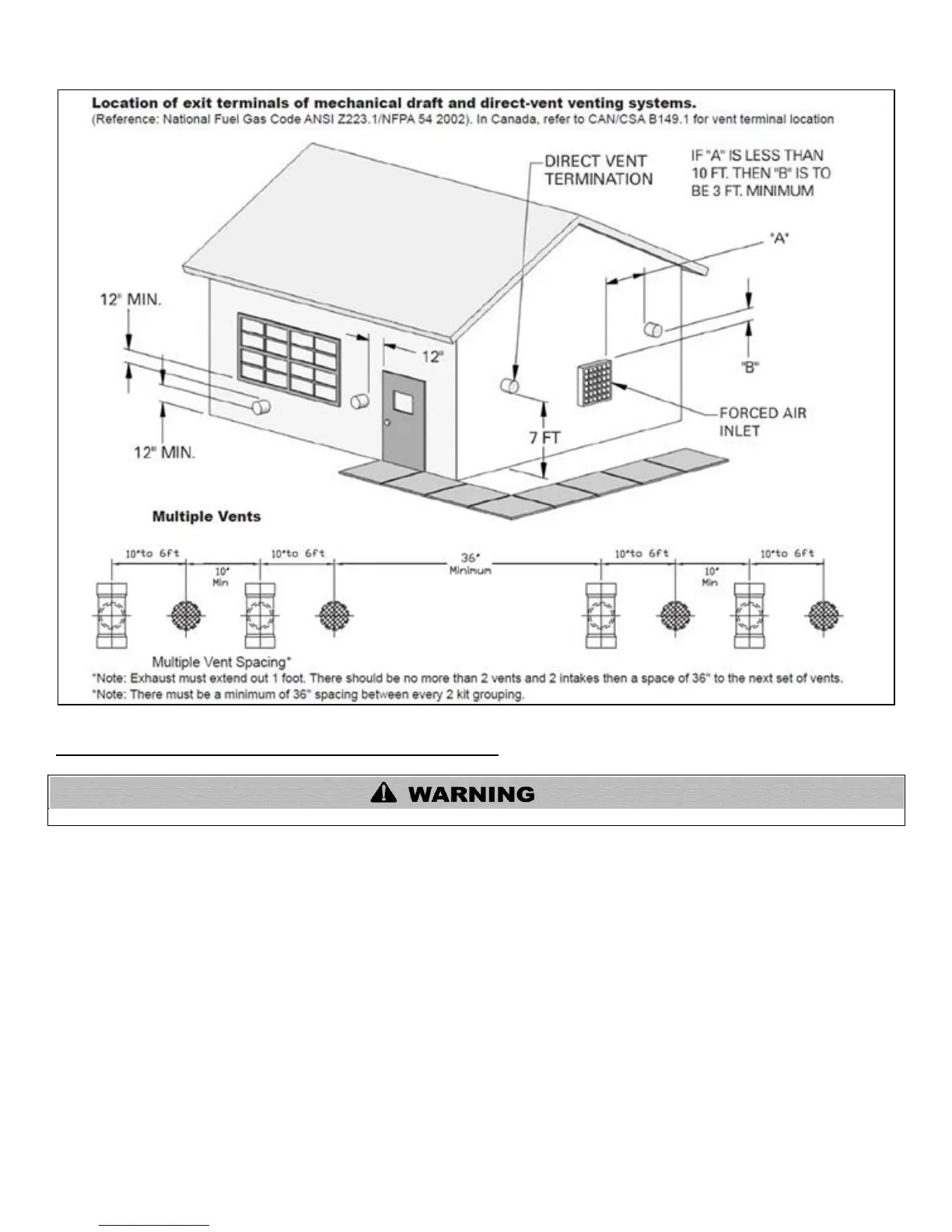 The boiler vent system shall terminate at least 3 feet (0.9 m) above any forced air intake located within 10 ft (3 m). NOTE: This