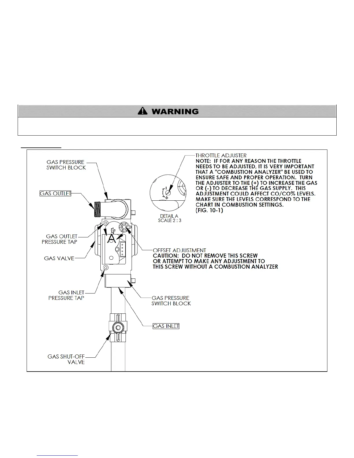 DO NOT adjust or attempt to measure gas valve outlet pressure. The gas valve is factory-set for the correct outlet pressure and