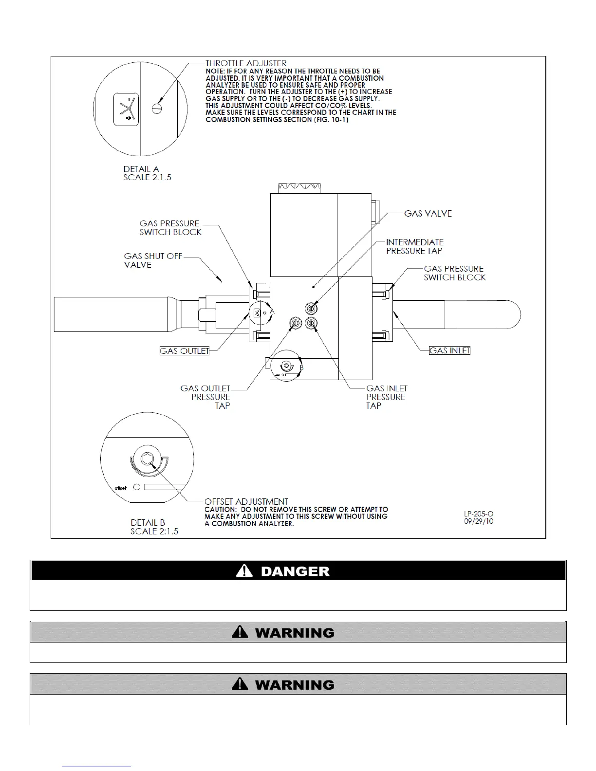 Adjustments to the throttle screw or offset may only be made by a qualified gas technician using a calibrated combustion analyzer