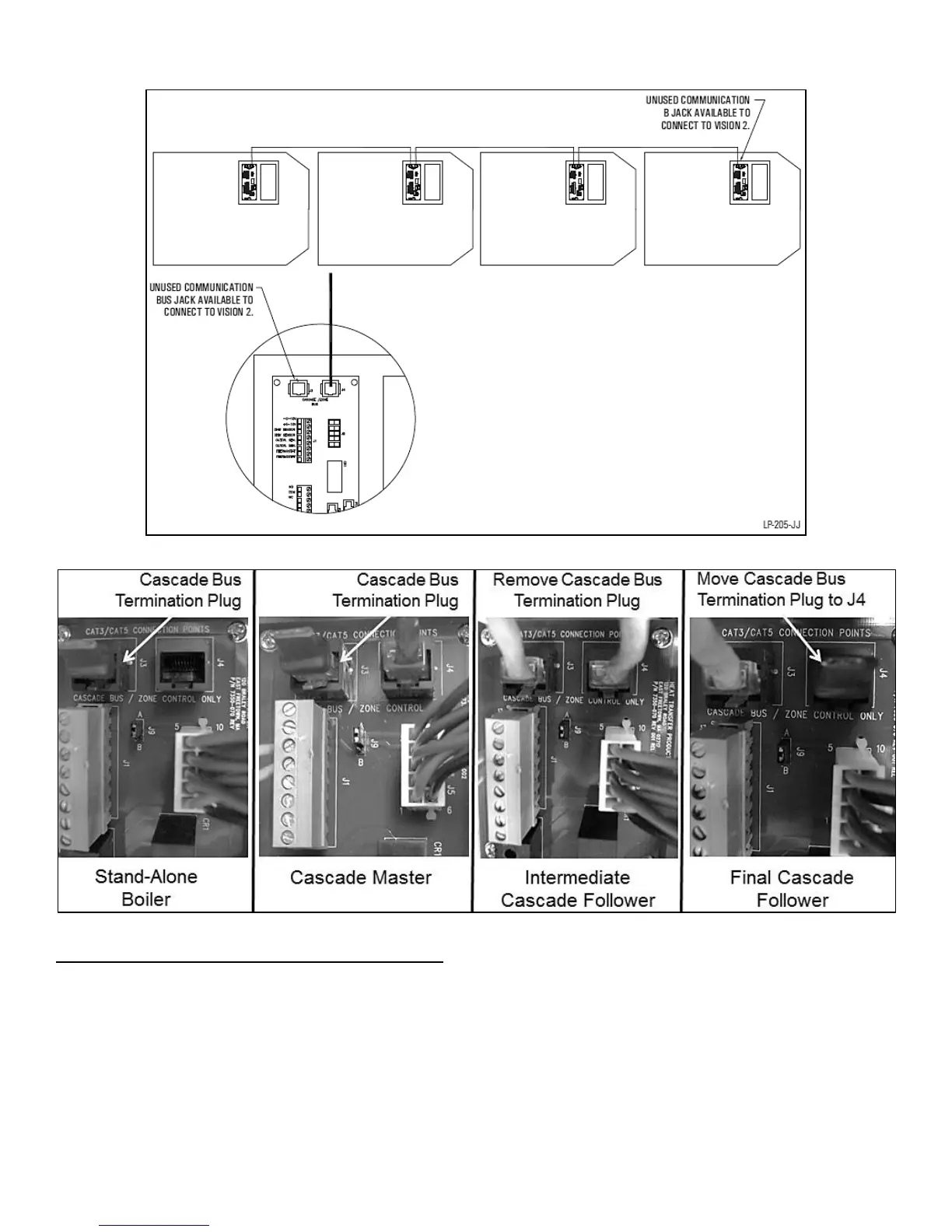 1. Place the cascade master overlay sticker onto the field connection board on the boiler designated as the cascade master.