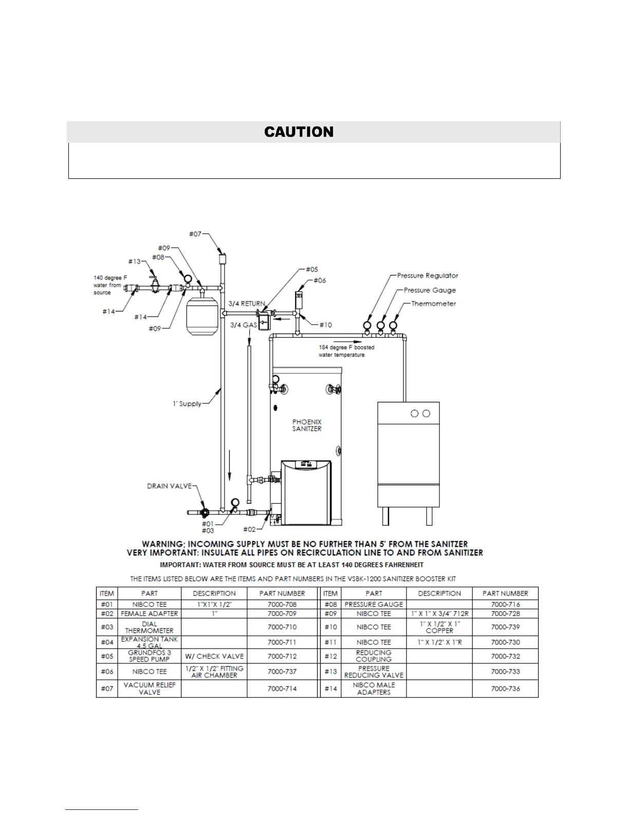 The standard Phoenix Water Heater does not meet the required temperature settings for sanitizer booster