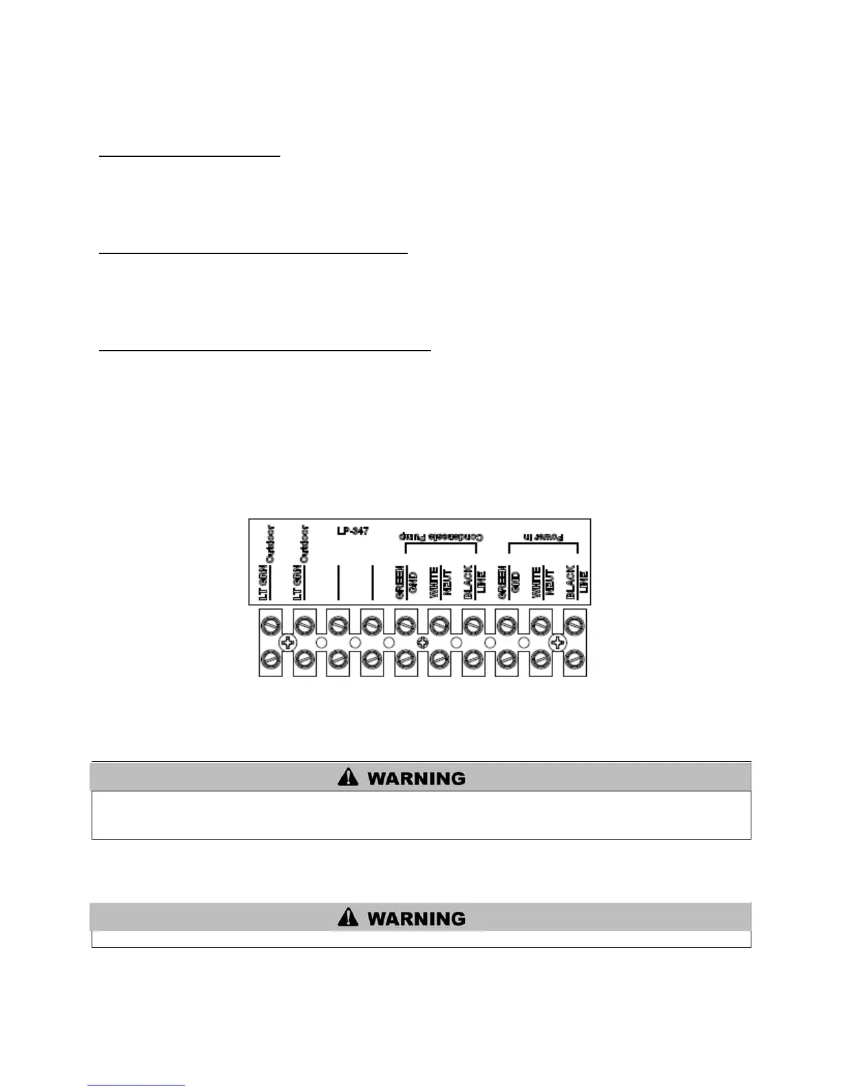 The heater has the capability of supplying power to a condensate pump. The connection is 120 VAC +/-