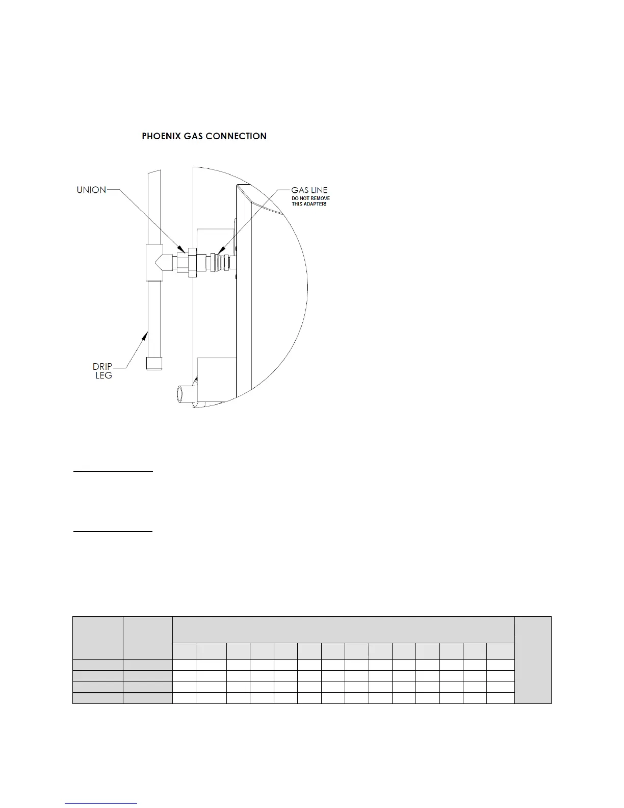 Refer to the table below to size the supply piping to minimize pressure drop between meter or regulator