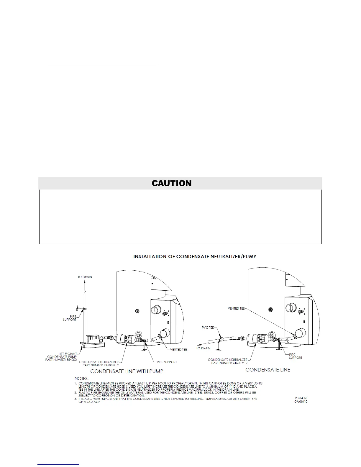 The condensate line must remain unobstructed. If allowed to freeze in the line or obstructed in any other