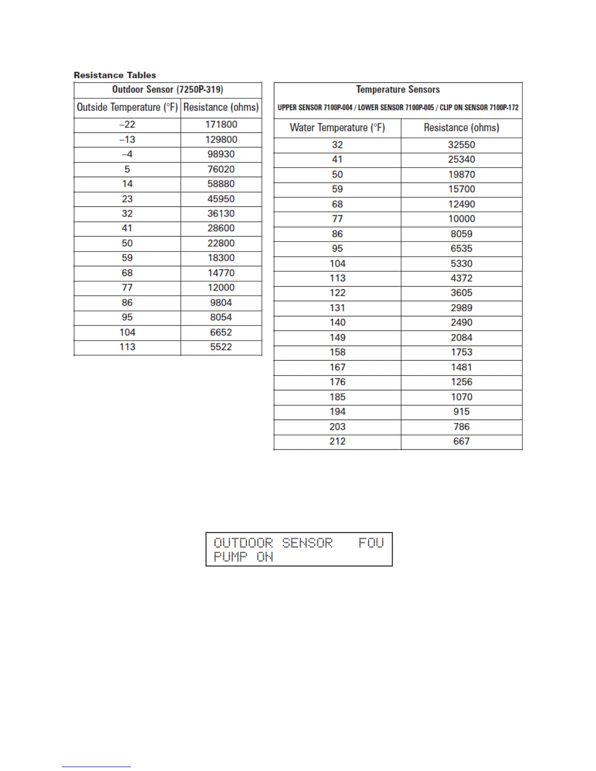 This display indicates that the outdoor sensor is defective, either shorted or open, or the outdoor