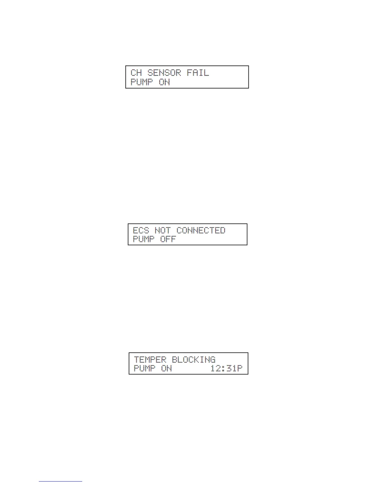 hydronic heating module to operate until the error is cleared. The second line indicates the status of the