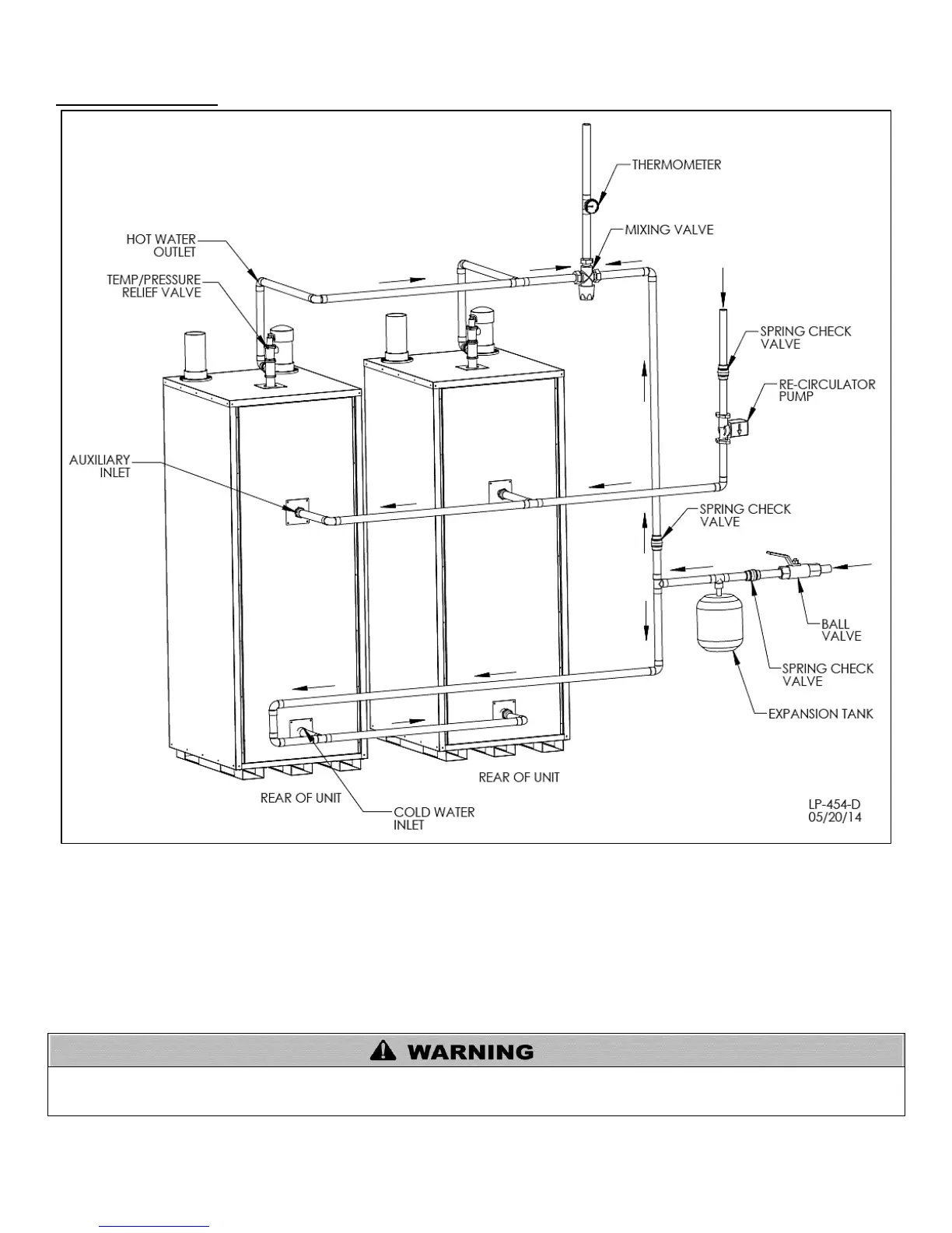 2. A thermal expansion tank suitable for potable water must be sized and installed within this piping system between the backflow preventer and the cold