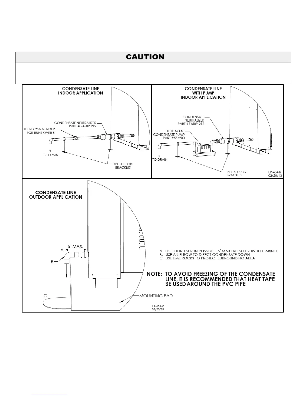 3. A frozen condensate line could result in a blocked vent condition. It is very important to protect the condensate line from freezing temperatures or any