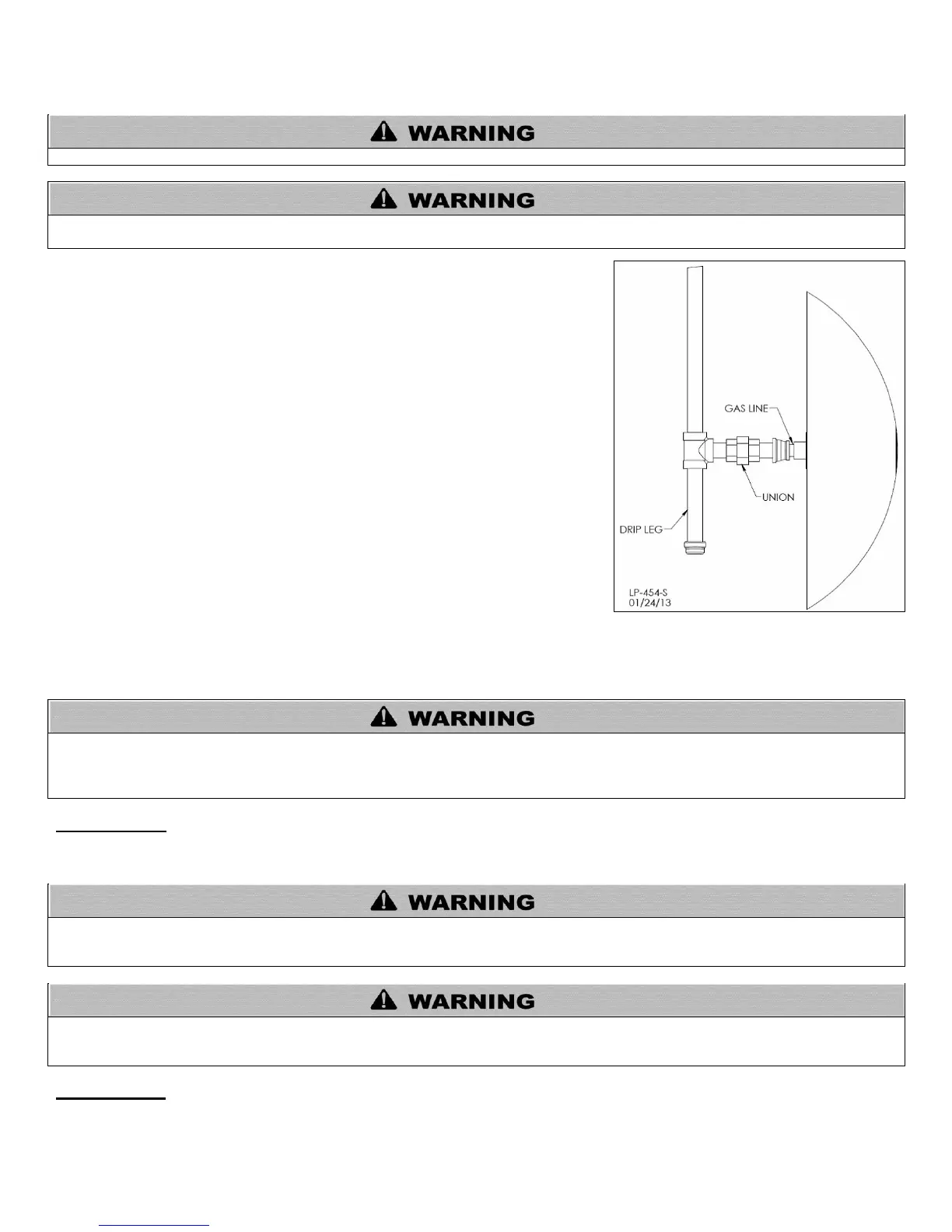 male pipe ends, leaving the two end threads bare. Failure to follow these instructions could result in gas leakage, and result in fire,