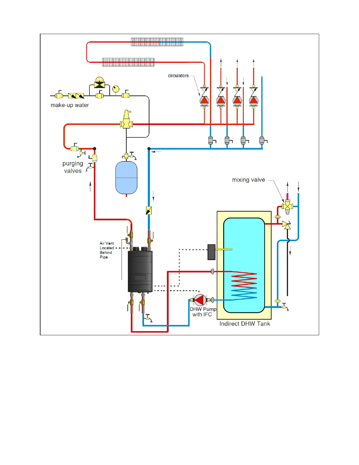 Figure 23 – Zoning with Pumps and Indirect Fired Water Heater – Direct Piping