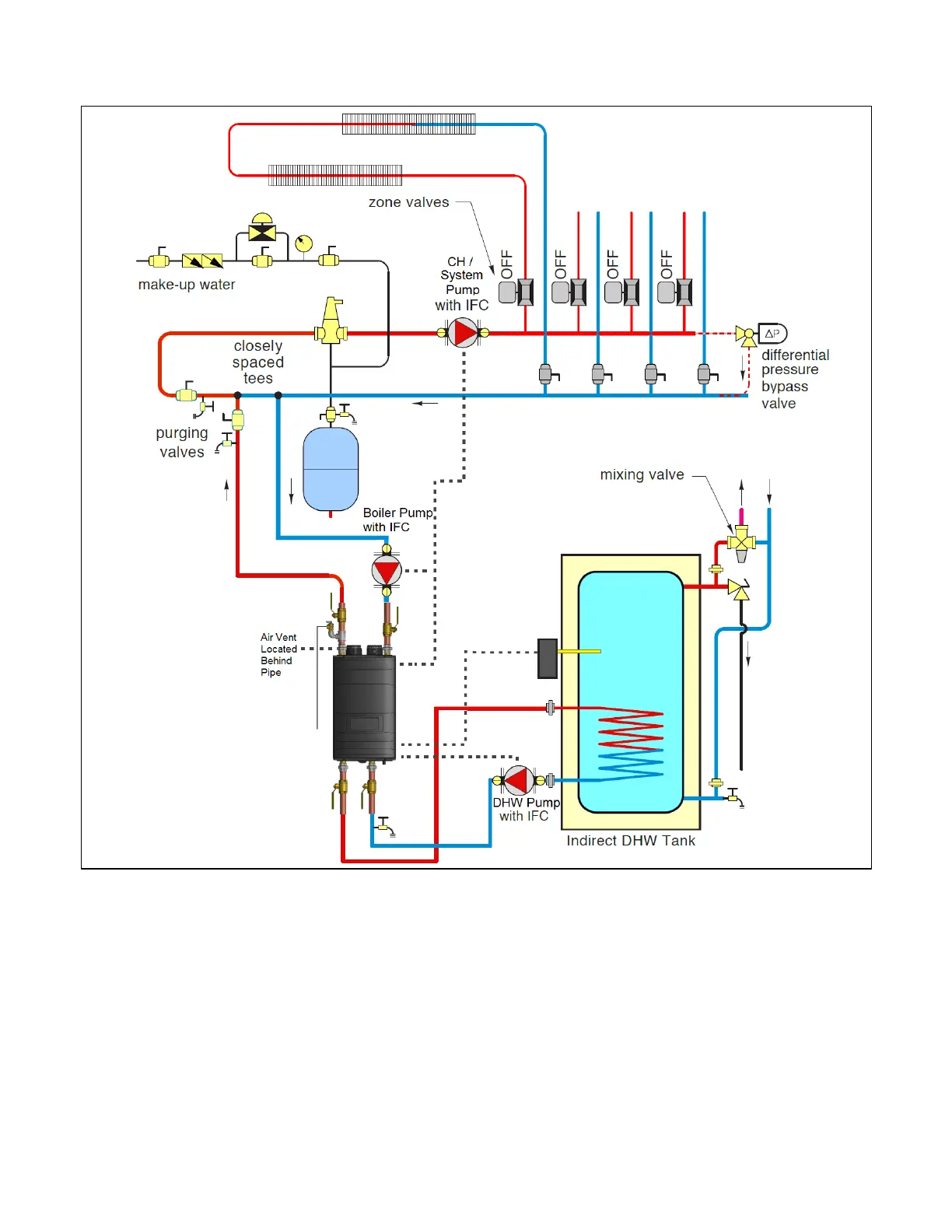 Figure 24 – Zoning with Zone Valves and Indirect Water Heating – Primary / Secondary Shown