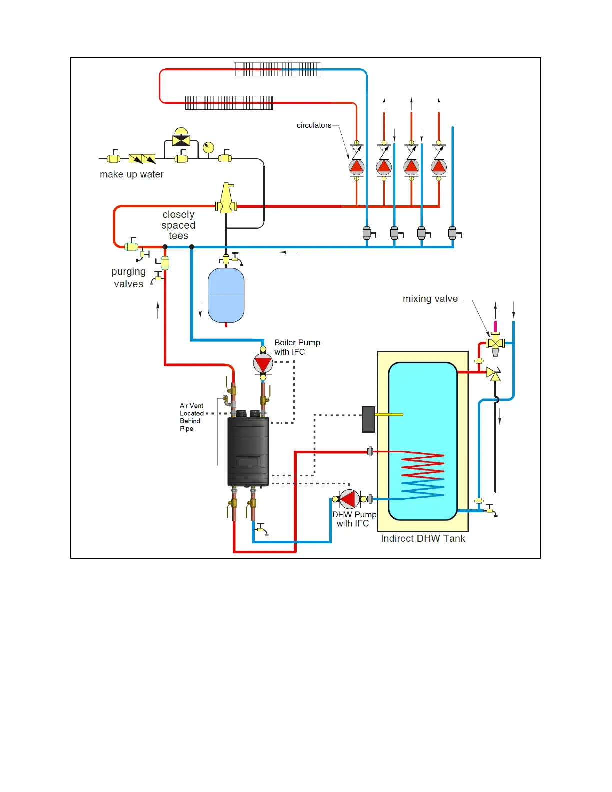 Figure 25 – Zoning with Pumps and Indirect Fired Water Heater – Primary/Secondary Shown