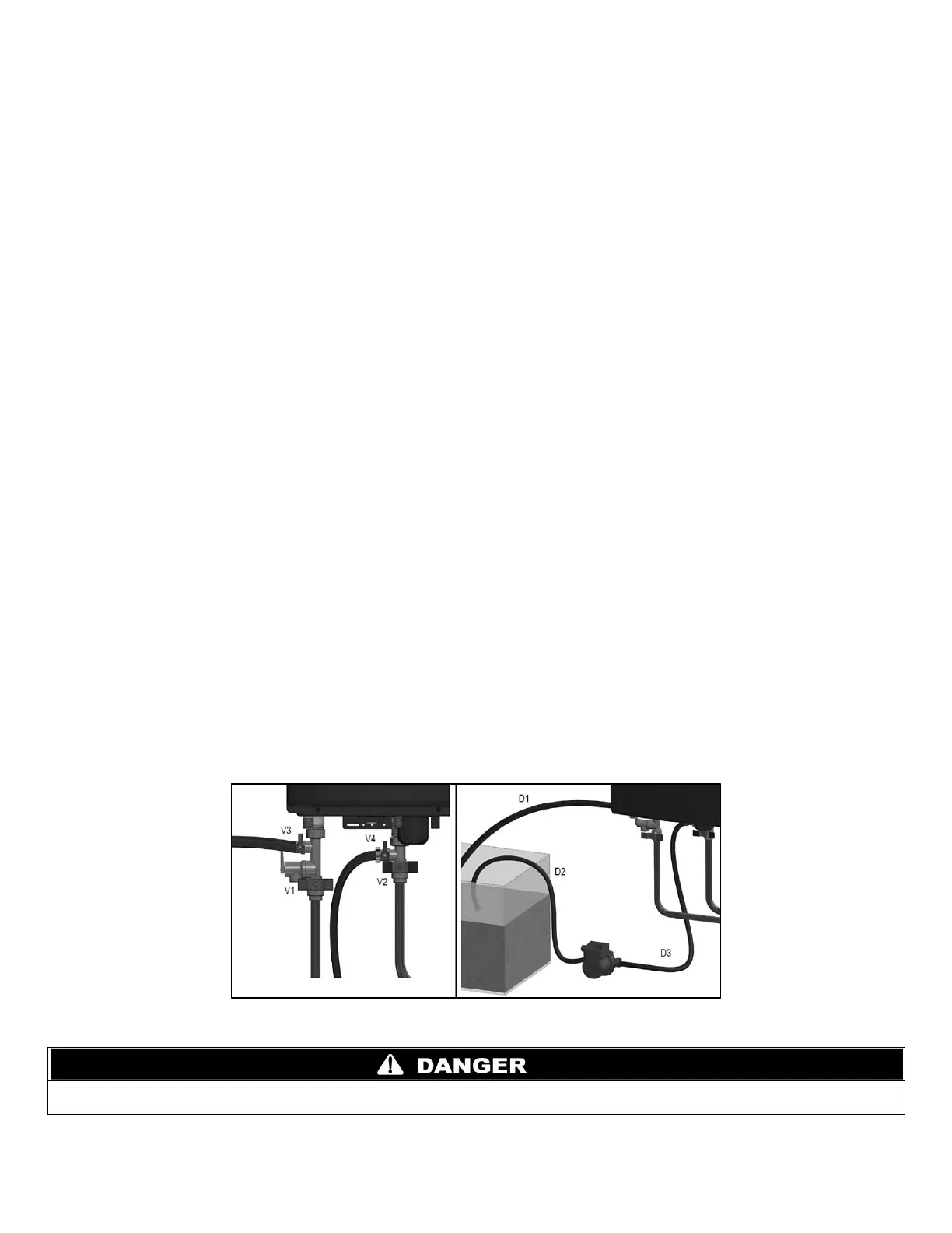 circulation pump outlet and the cold water inlet line to valve V4. Connect the other hose (D2) to the circulation pump inlet and place the