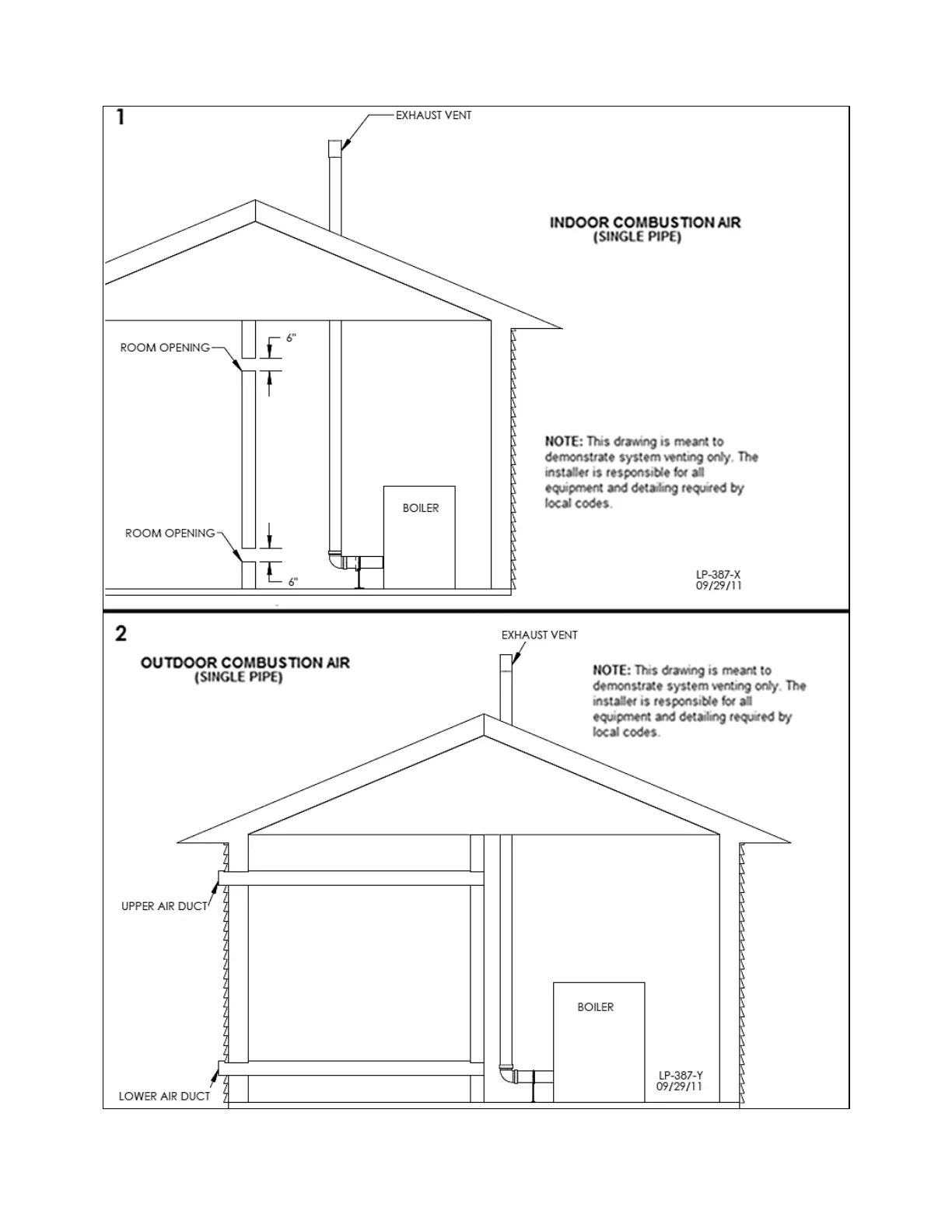 Figure 13 1, 13 - 2 NOTE: These drawings are meant to demonstrate system venting only. The installer is responsible for all