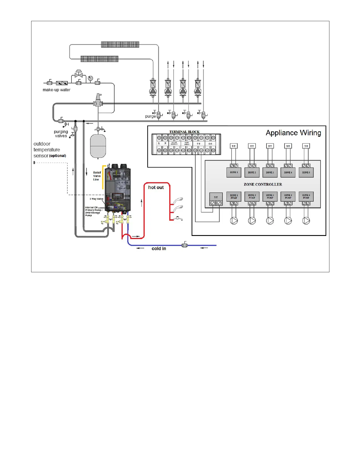 4. The minimum pipe size of DHW piping should be ¾” diameter and CH piping should be 1” in diameter.