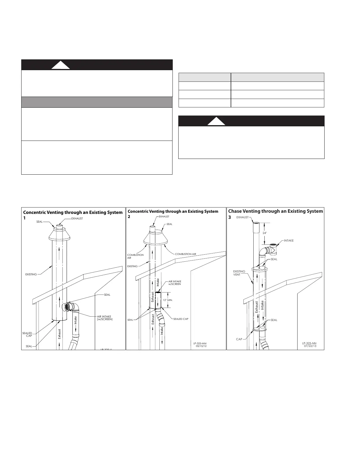 Figure 25 - 1, 2 - Concentric Venting Through an Existing System, 3, Chase Venting Through an Existing System