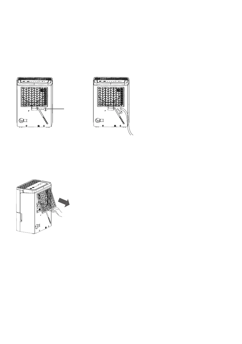 The lter is located behind the air inlet grille. Grip the tab on the lter and pull it upward, then pull it
