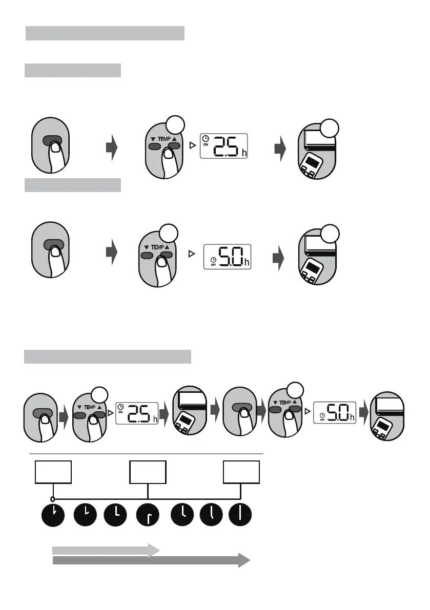 1. Lors du réglage de la minuterie ON ou TIMER OFF, l'heure augmentera par incréments de 30 minutes à