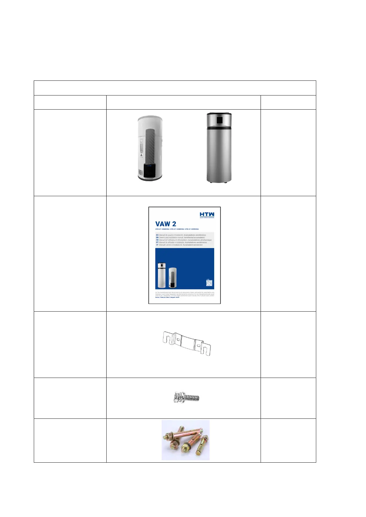 HTW VAW 2 - Elementos dentro de la Caja del Producto; Descripción de la Unidad; Piezas y Descripciones