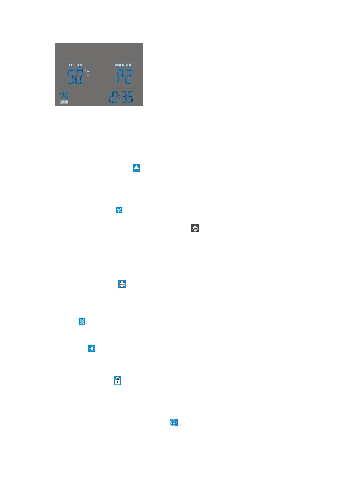 El icono indica que la temperatura del agua caliente sanitaria ha alcanzado el punto de ajuste.