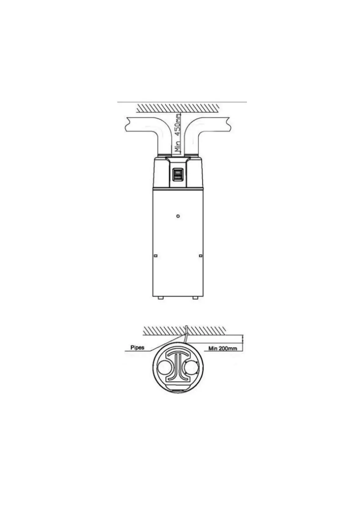 - If the unit connects with air ducts it should be DN 180mm for pipes or 180mm internal diameter
