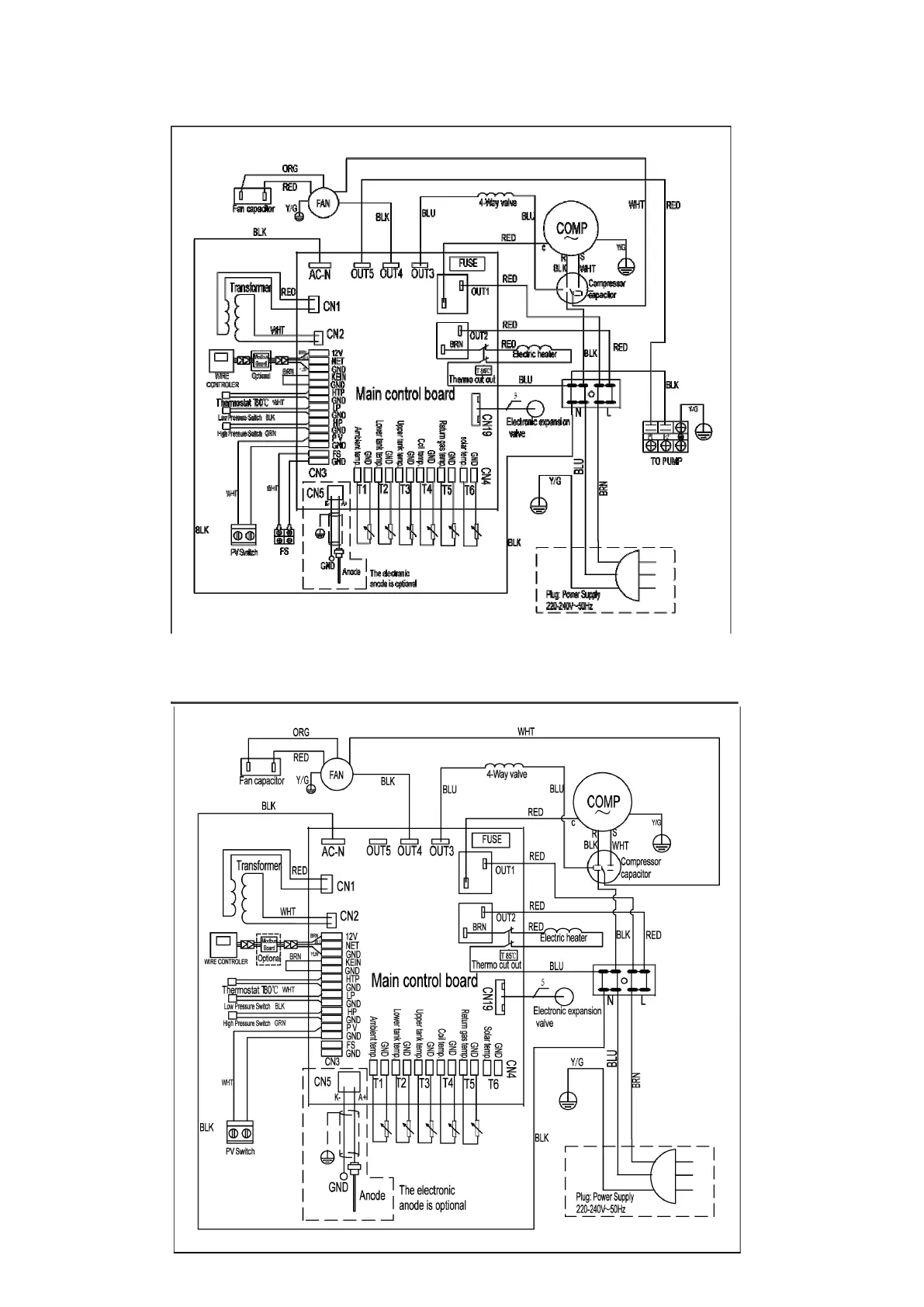 Please refer to the wiring diagram on the electric box.