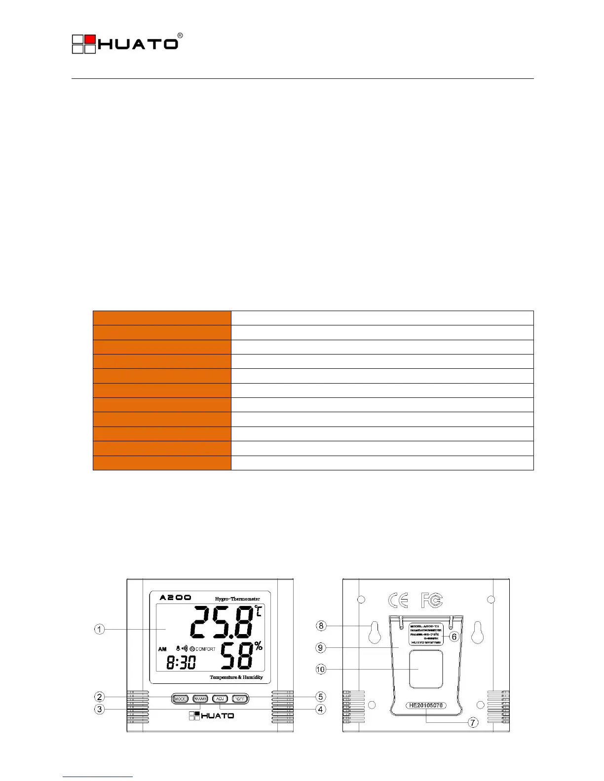 2. A200 series digital thermo-hygrometer specifications:
