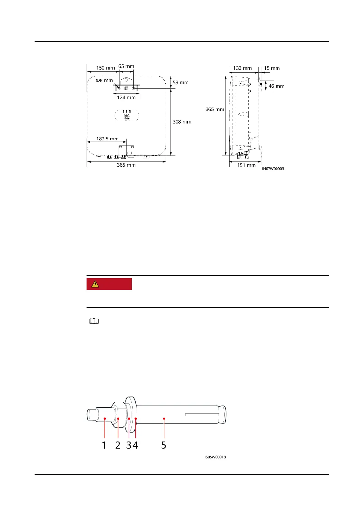● The expansion bolts delivered with the inverter are used for solid concrete walls. For