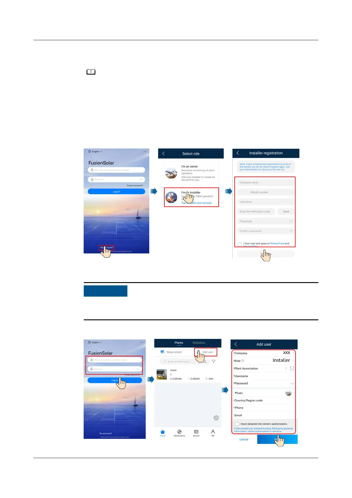 To create multiple installer accounts for a company, log in to the FusionSolar App