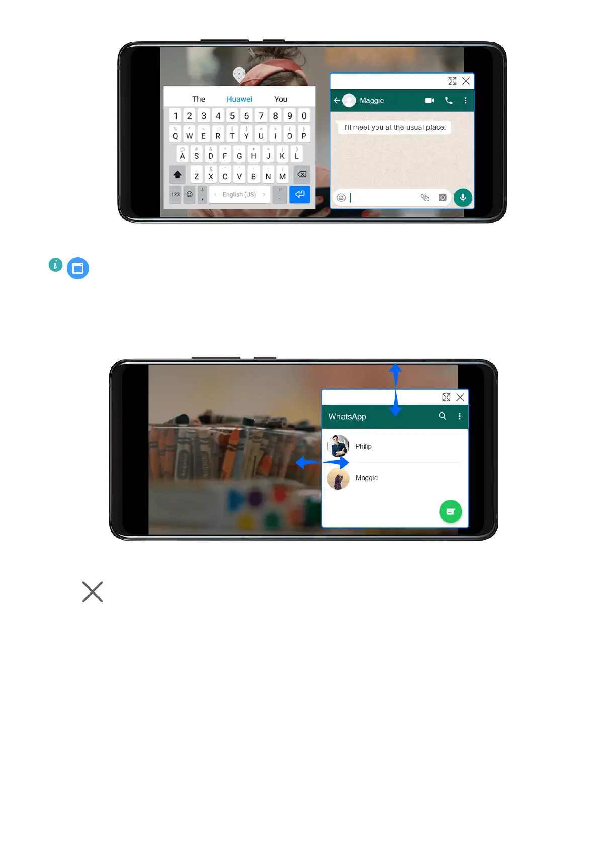 Drag the edge of the oating window inwards or outwards to expand or reduce it.